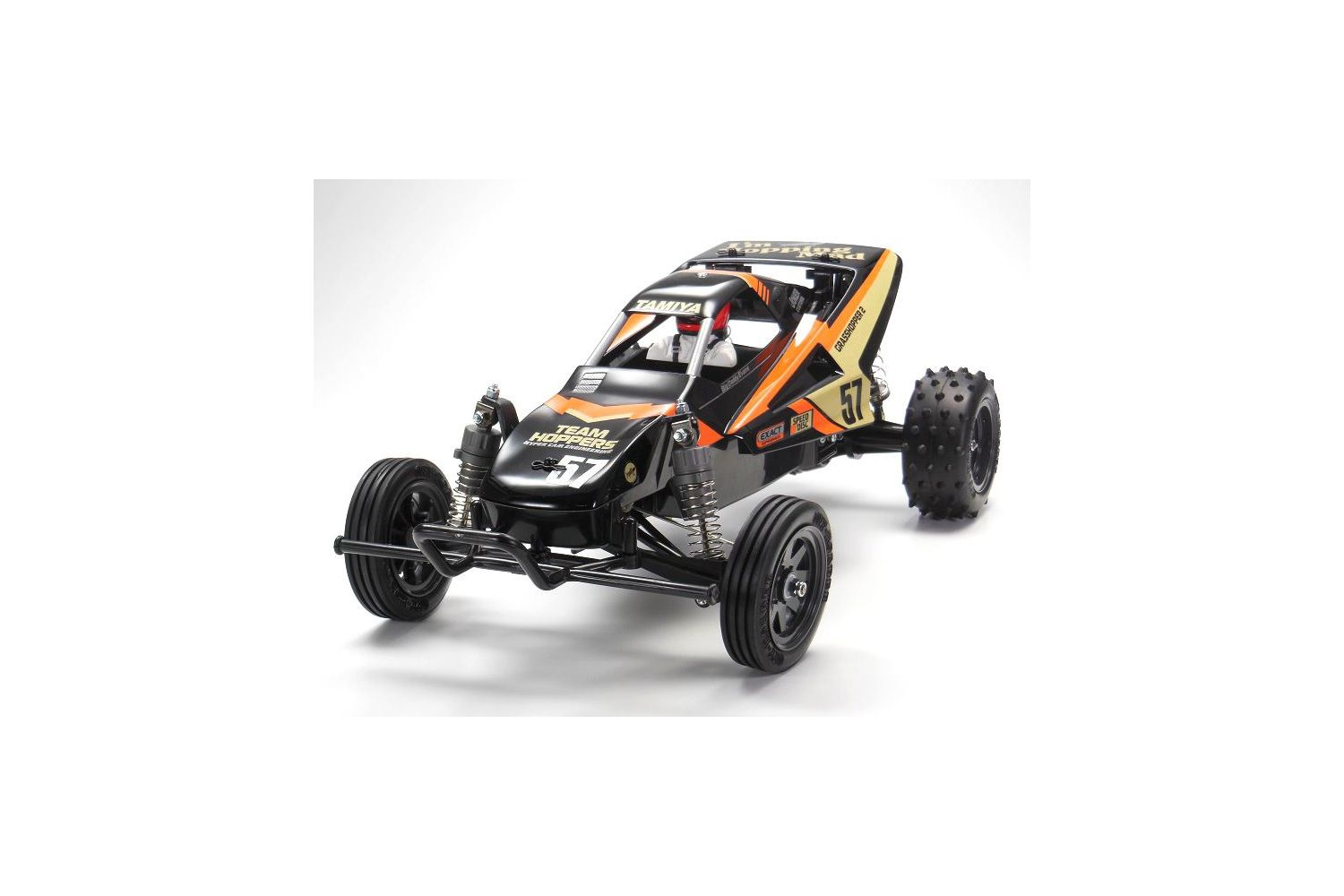 Tamiya is delighted to announce a colour variation version of a re-released classic – The Grasshopper II. The famed body is moulded in black plastic, and CVA oil dampers are included as standard for export kits only. A controllable, versatile drive awaits!